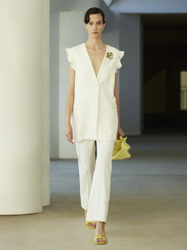⑥白のベスト×コーラルピンクのトップス